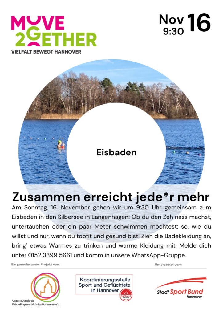 Am Sonntag, 16. November um 09:30 Uhr treffen wir uns zum Eisbaden am Silbersee in Langenhagen. Bei Interesse oder Fragen, bitte über WhatsApp-Gruppe Link zur WhatsApp-Gruppe oder 0152 3399 5661.