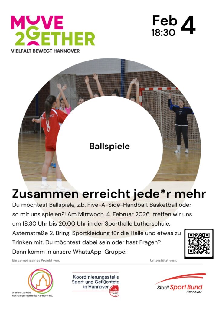 Am Mittwoch, 4. Februar um 18:30 Uhr treffen wir uns zum Ballspielen in der Sporthalle der Lutherschule, Asternstraße 2. Bei Interesse oder Fragen, bitte über WhatsApp-Gruppe Link zur WhatsApp-Gruppe oder 0152 3399 5661.
