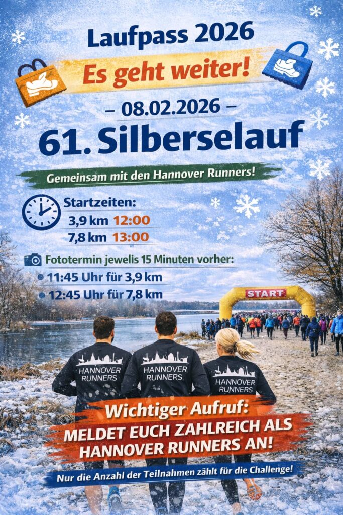 Am Sonntag, 8. Februar treffen wir uns zum Silberseelauf für 3,9 km (um 12 Uhr) oder 7,8 km (13 Uhr). Alle Infos zum Lauf findet ihr hier: https://www.lac-langenhagen.de/index.php/silberseelauf/2026. Bei Interesse oder Fragen, bitte über WhatsApp-Gruppe Link zur WhatsApp-Gruppe oder 0152 3399 5661. Move2gether – Vielfalt bewegt Hannover